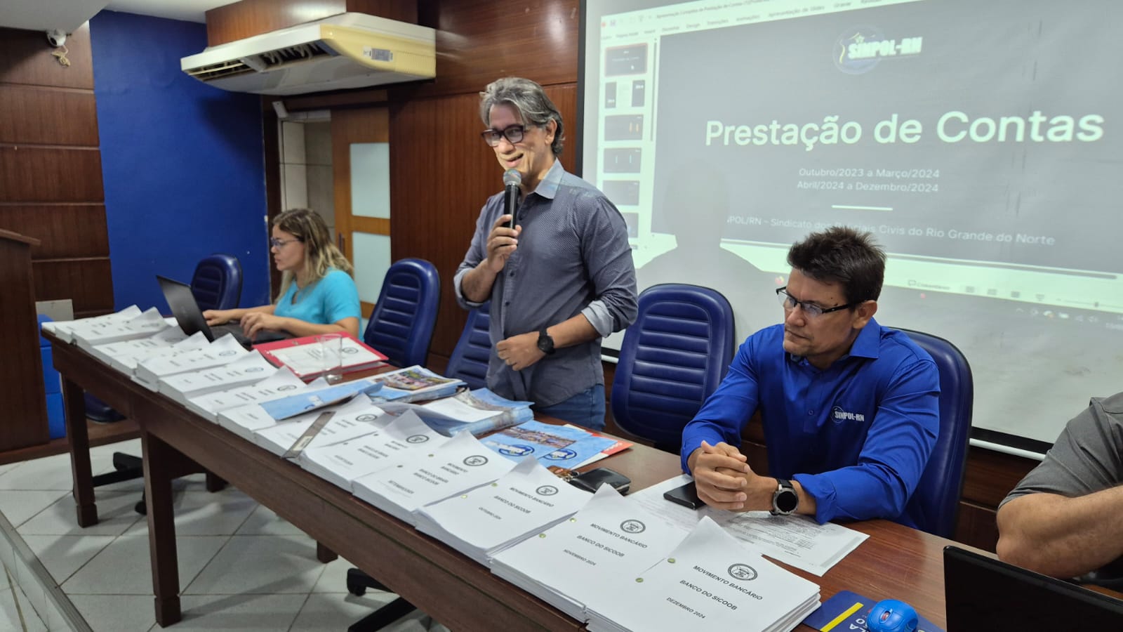 O SINPOL-RN realizou, na tarde desta sexta-feira, 13, Assembleia de Prestação de Contas referente a dois períodos da atual gestão (outubro a dezembro de 2023 e todo o ano de 2024). O encontro foi exclusivo para filiados, e os presentes aprovaram por unanimidade as contas dos dois períodos.